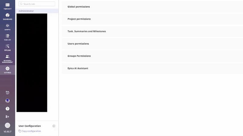 - Role-Specific Permissions: Users can only perform actions within their assigned permissions. For instance, a user with a role that includes full access to the “Development” group can create and manage tasks in those projects. However, the same user may not be able to expand or edit projects in the “Marketing” group due to limited permissions.